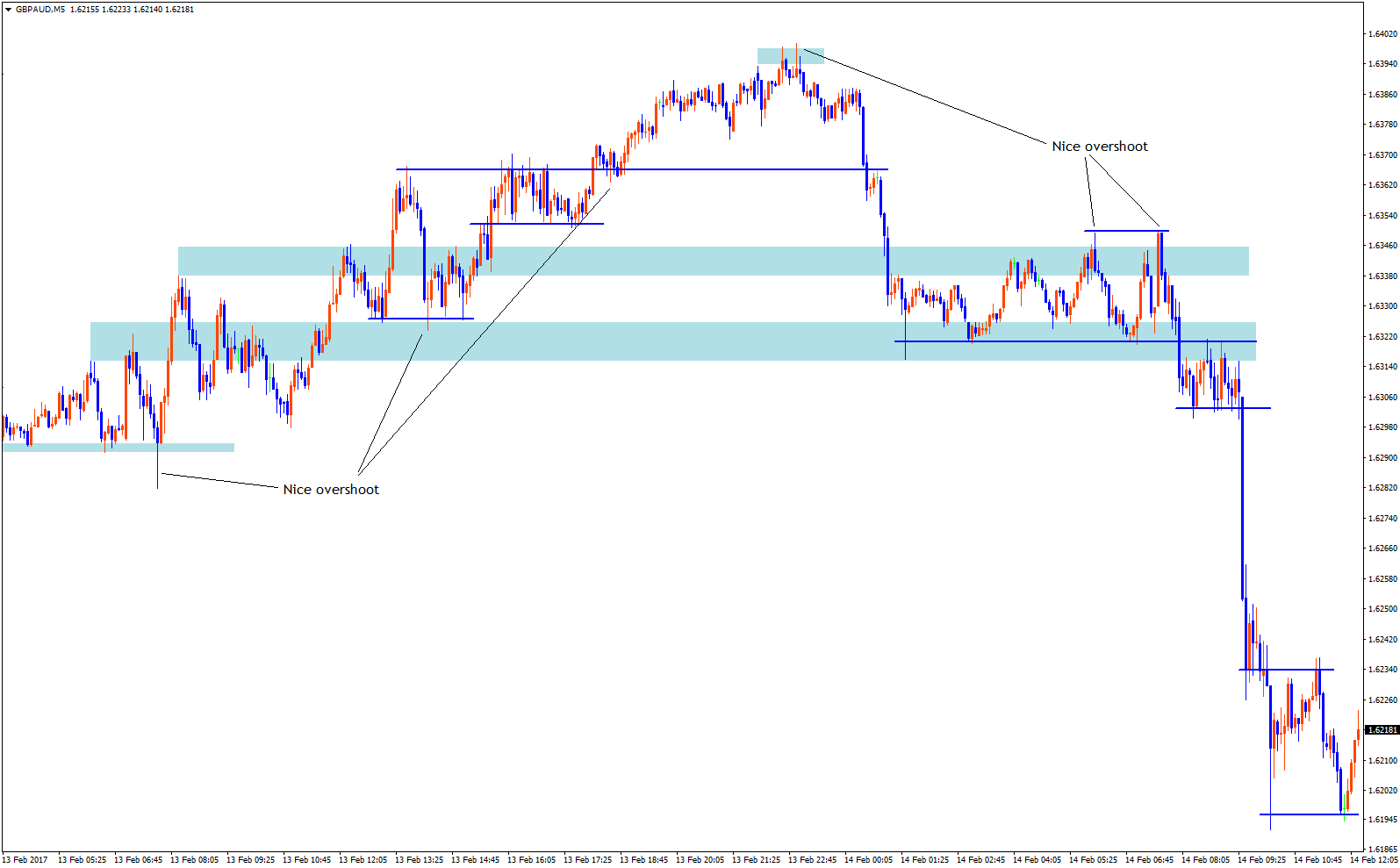 As mentioned previously, if we see support or resistance fail, and price shoots in the opposite direction, oftentimes we can treat that break as either a manipulation of that level, or as a potential breakout!